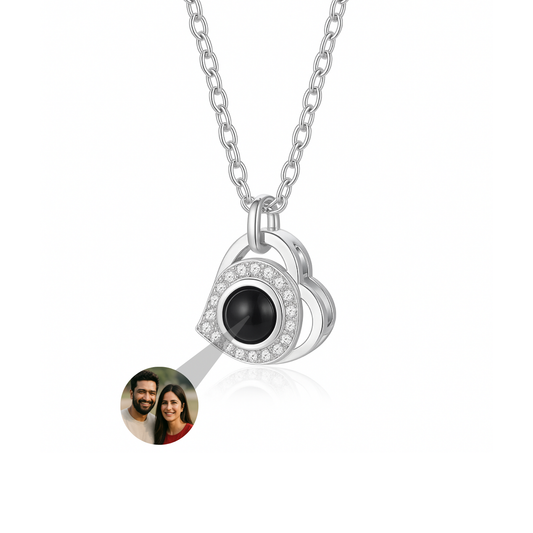 Interlaced Heart Photo Necklace - Cable Chain
